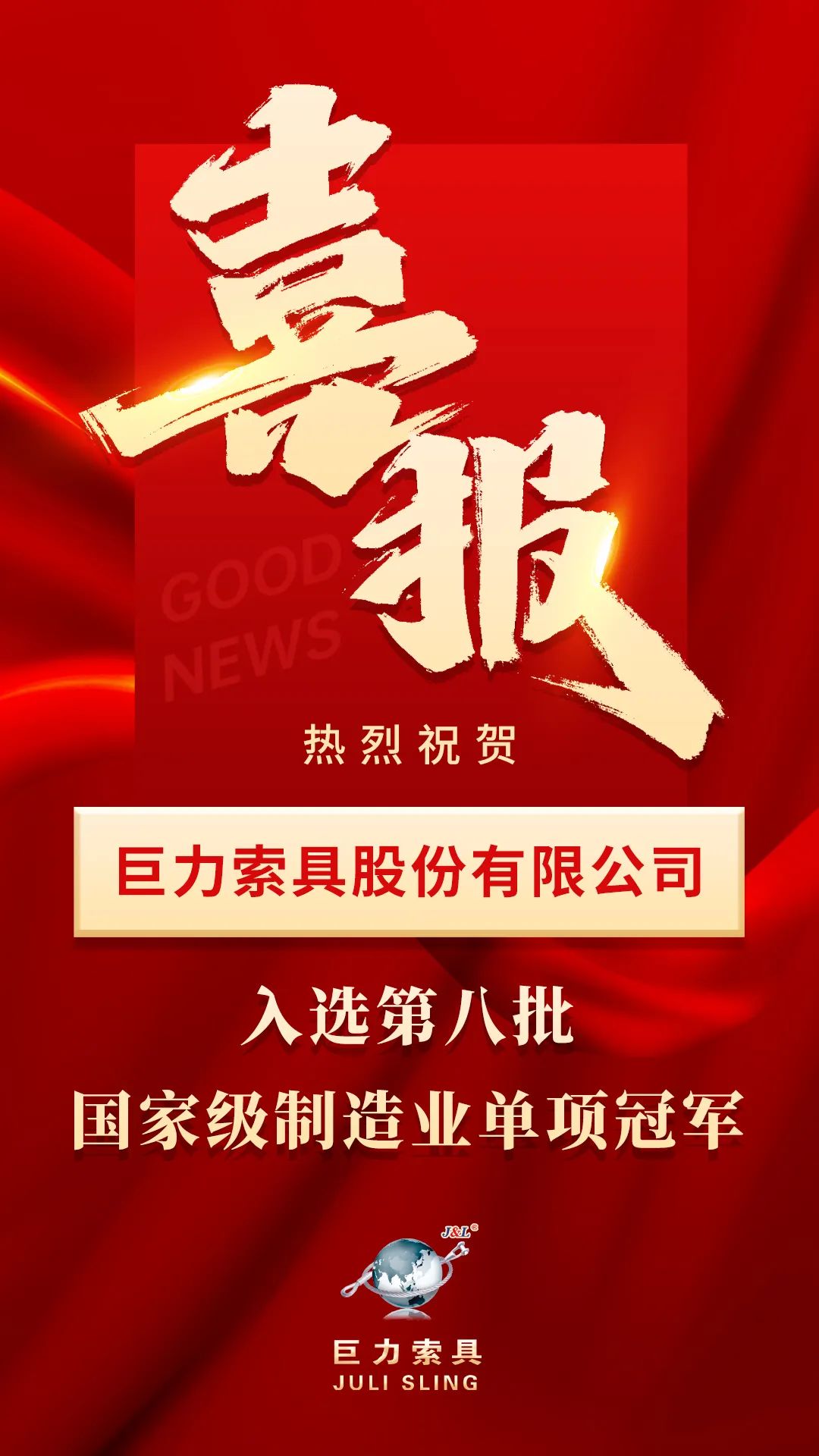 國家級榮譽!巨力索具獲評國家級制造業單項冠軍企業