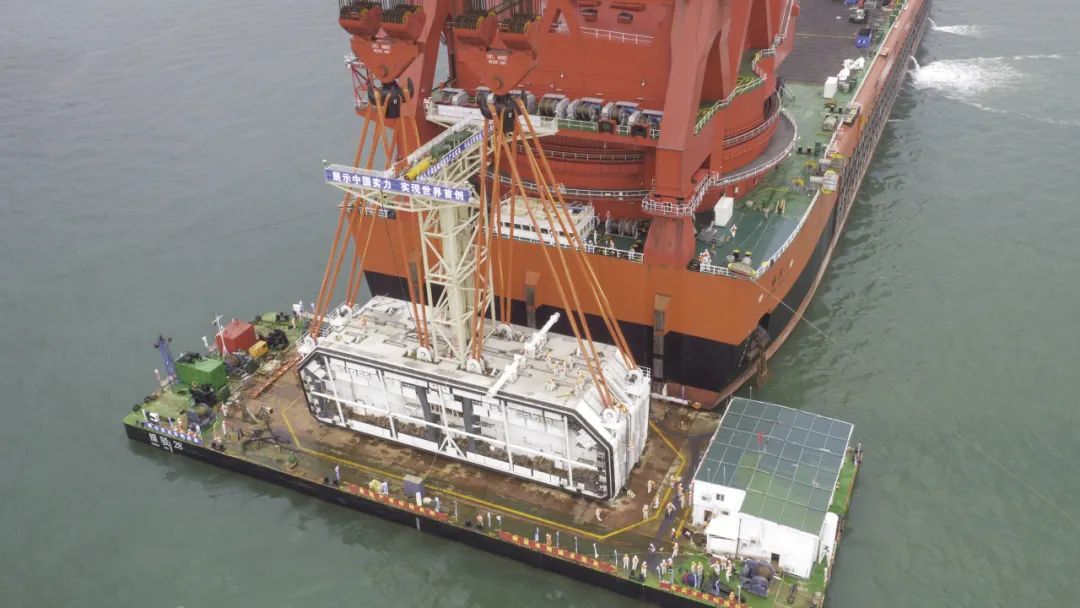 港珠澳大橋最終接頭縫隙僅為12.35米,接頭長度就要12米,且重達6000噸,為避免其入水后將受到洋流,浮力等影響,要求高低差控制在15mm以內,難度堪比“太空對接”。完成此次吊裝的產品是巨力索具提供的荷載900噸,長度60米的高強度吊裝帶,其長度誤差控制在50mm內,比常規吊帶精度提高了數十倍。而承載此次吊裝的是世界最大單臂全旋回起重船“振華30”,同時振華30所配套的所有主鉤起升和變幅鋼絲繩均是由巨力索具生產制造,其單根重量超200噸,是當時國內最大直徑復雜結構超高強度鋼絲繩,是助力振華30實現12000噸強力吊裝的關鍵組成部分。