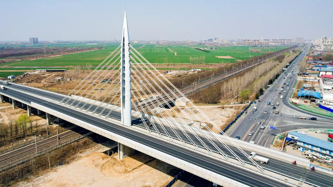 安大線建材通道徐水南外環與京廣鐵路斜拉轉體立交橋是雄安新區標志性工程,能更好地保障雄安新區建材運輸通行能力和服務功能的發揮,緩解通往雄安新區的交通壓力,為過往車輛提供了快捷通暢的交通環境,從而實現路網連通、交匯、通達的集散功能。橋梁主體鋼結構部分和斜拉索全部由巨力索具承接施工。