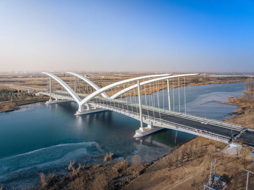 白溝引河留通橋是雄安新區地標性建筑,位于白溝引河入淀口,是入淀口上的重要節點,同時是白溝引河入燒車淀北部片區的門戶。大橋上部結構鋼構件用量1500多噸,均由巨力索具股份有限公司制造施工。