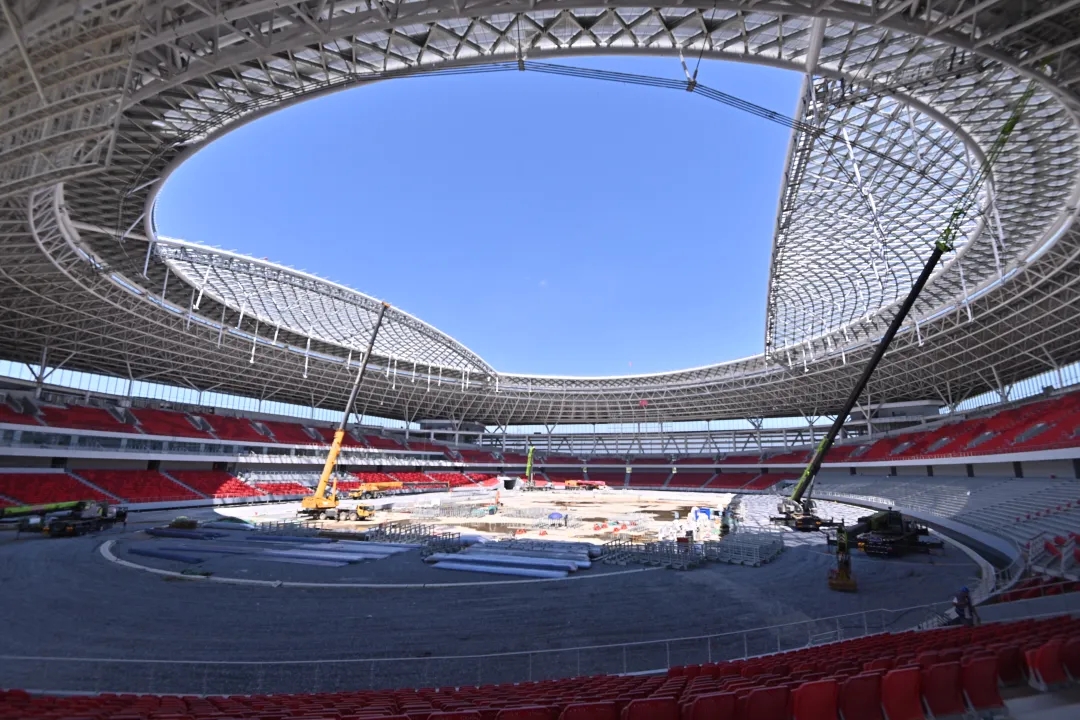 雄安體育中心的建設不僅注重美學設計,更融入了大量科技創新元素。國內首創的“輪輻式張弦鋁合金網殼”屋頂體系,將單層網殼與索承張拉技術相融合,以輕盈之姿承載萬鈞之力。國內首創的“漣漪懸索網格結構”,結合懸索、網格與新型材料技術,不僅實現了大跨度空間覆蓋,還以獨特的形態呼應了雄安新區的生態理念。