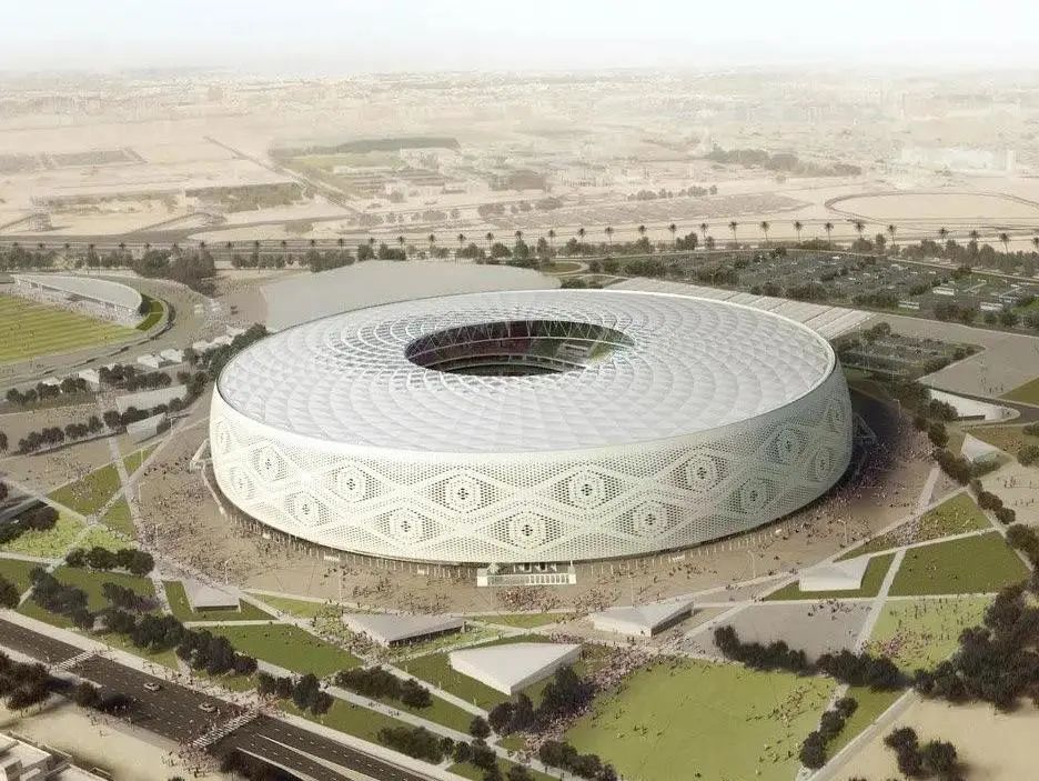 該球場是由卡塔爾建筑師Ibrahim M. Jaidah設(shè)計的,其設(shè)計靈感源自于阿拉伯男子佩戴的白色針織帽(Gahfiya),獨特的鏤空編織圖案極具阿拉伯特色,將阿拉伯當(dāng)?shù)仫L(fēng)情展現(xiàn)得淋漓盡致。