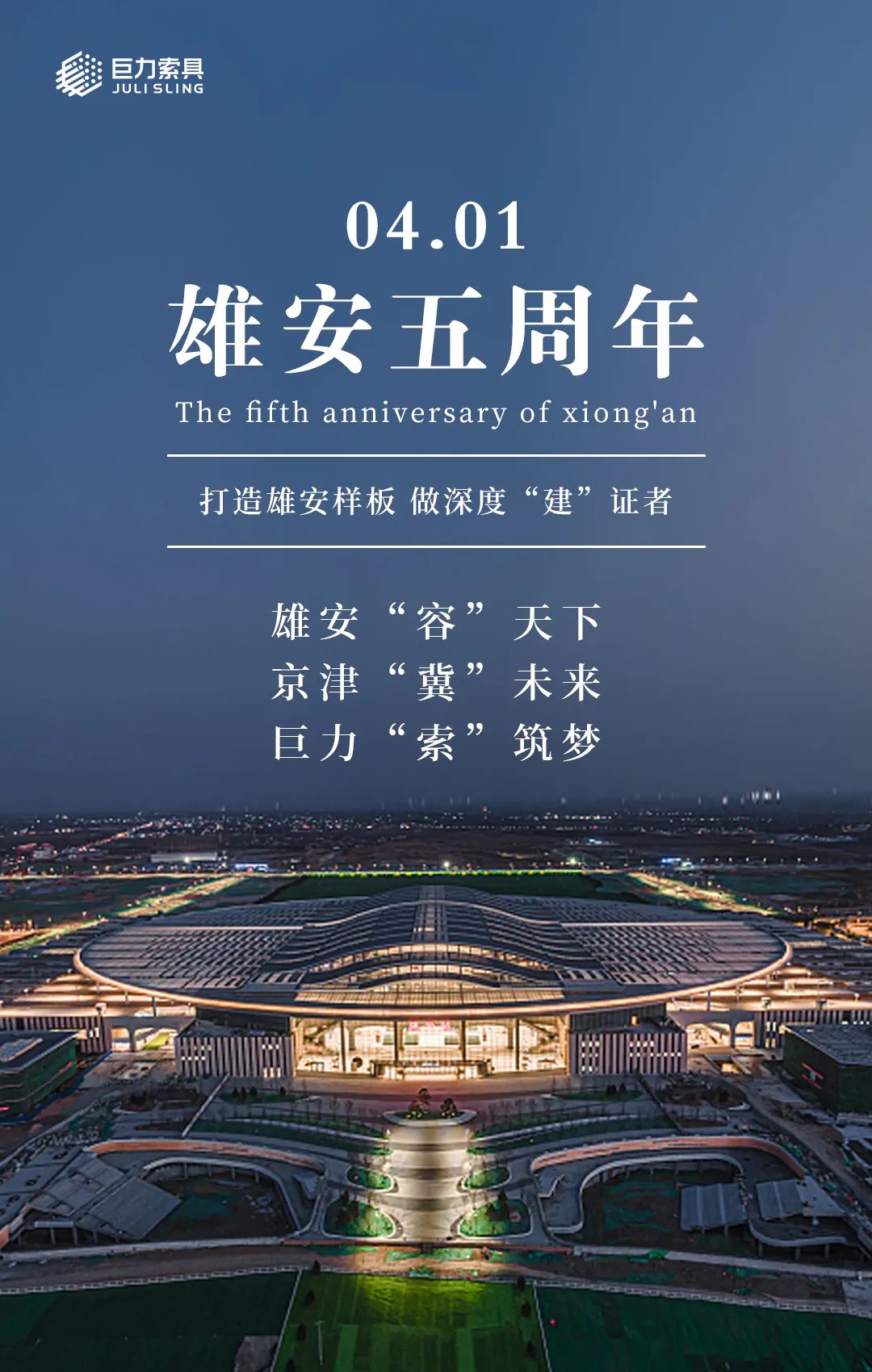 雄安新區,這是一座智慧之城,是綠色之城、未來之城。在雄安新區成立五周年之際,巨力索具從雄安之速、雄安之跨、雄安之新、雄安之變四個方面回顧巨力索具與雄安同呼吸、共成長的難忘經歷。