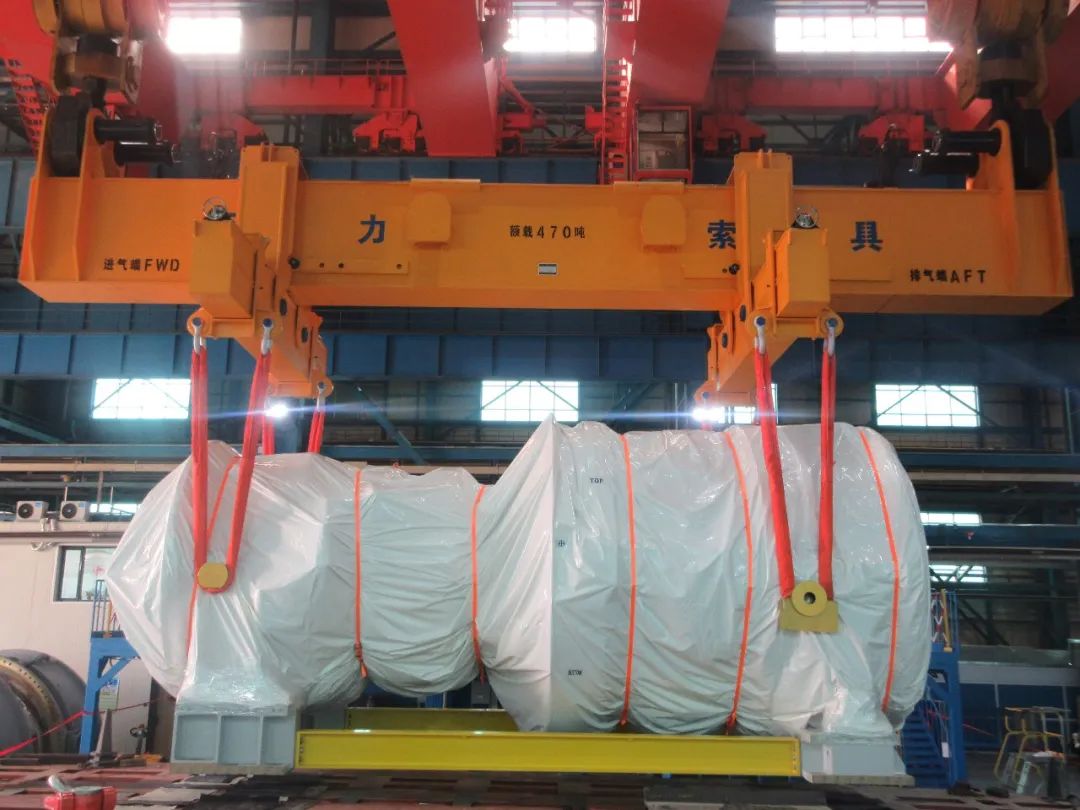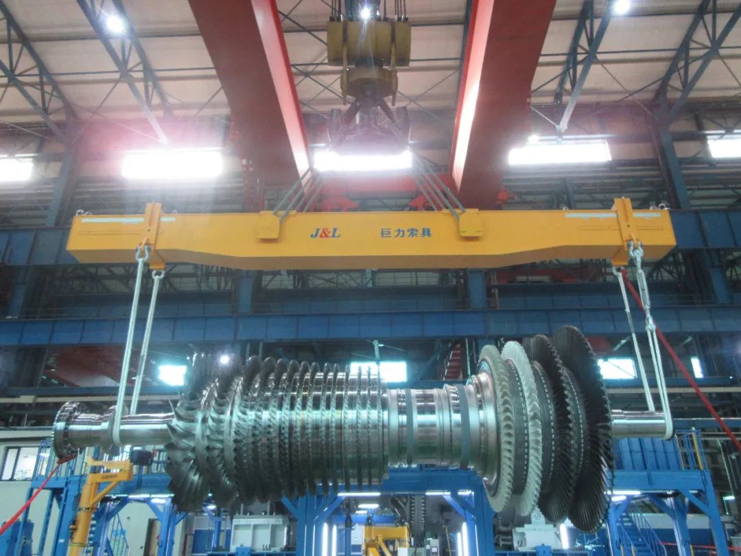 近日,在哈電通用燃氣輪機有限公司總裝車間,首臺國產HA級重型燃機順利下線,準備交付粵港澳大灣區發電企業。巨力索具為其提供了額載110T轉子吊具,470T燃機整機吊具,及高強吊帶,高強吊繩等產品,為順利下線提供保障。