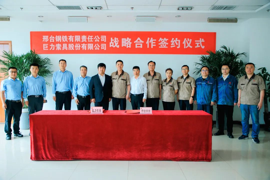 2023年6月19日,巨力索具與邢臺鋼鐵簽訂戰略合作協議,邢臺鋼鐵董事長張育明,巨力索具董事長楊建國、總裁楊超出席簽約儀式,并就合作情況展開詳細座談。