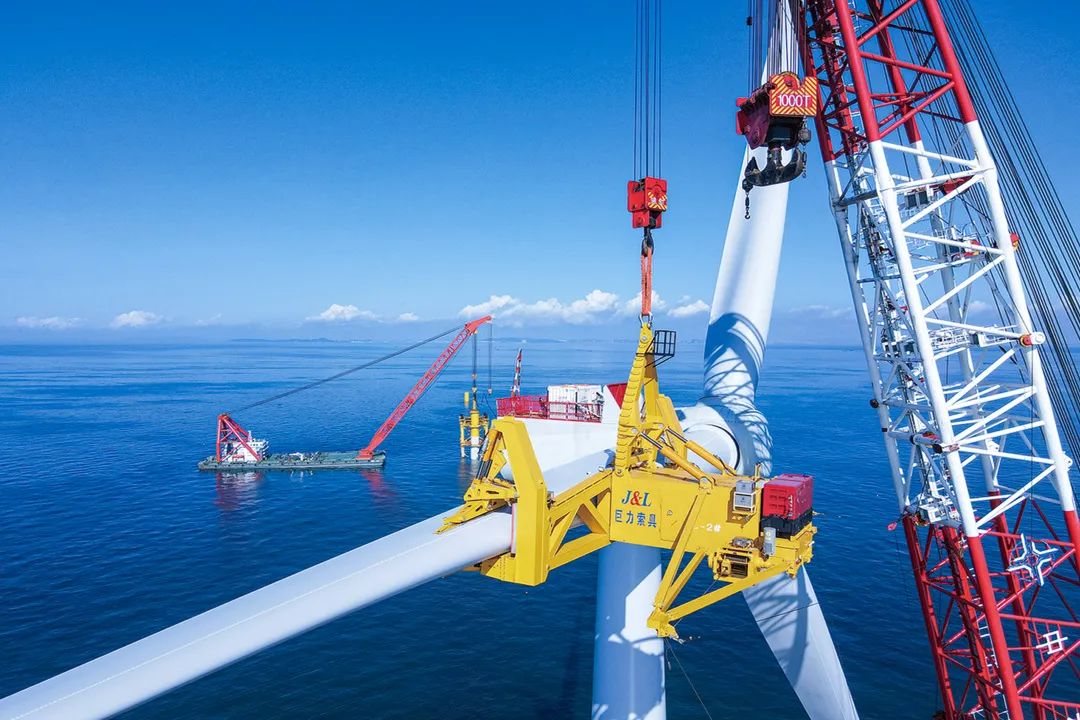2021年9月,巨力索具研發(fā)的國內首臺50噸大兆瓦全角度旋轉式海上單葉片吊具,剛剛面世,便在汕頭某海域連續(xù)展開作業(yè),順利完成5臺風機的葉片吊裝,經受住了考驗,完美的展示了巨力吊具的高可靠性、高安全性及高效率。