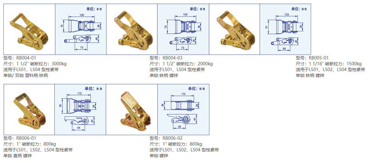 | 產品型號 | 適用尺寸 | 破斷拉力(kg) | 規格大小(mm) | 表 面 | 適合型號 | |||
